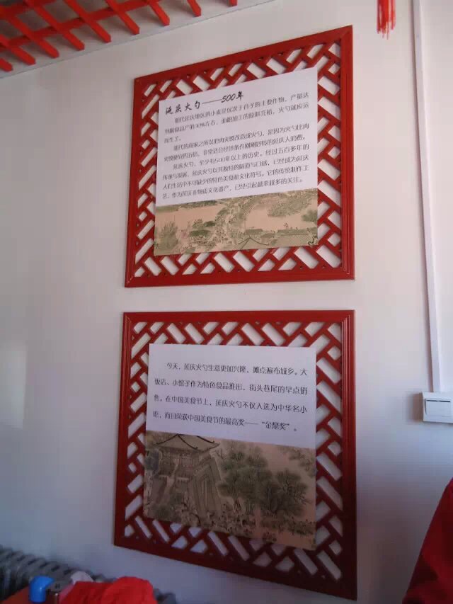 永宁镇位于延庆县中部,距县城17公里,距市区德胜门90公里,是延庆县第二大镇。永宁北依香营乡、刘斌堡乡,东临四海镇,西部由北至南分别与旧县镇、沈家营镇、井庄镇接壤,南与大庄科乡及怀柔县交界,辖区面积158.7平方公里,其中南北长24.18公里,东西长19.76公里。临街修建的仿古建筑,跟北京琉璃厂相似,只不过卖文玩的少,卖日用百货的居多,锅碗瓢勺、农具等摆在店门口,透出乡土气息。延庆永宁‘火勺大王’店名由著名书画家爱新觉罗·启德书写,“延庆火勺王”五个大字龙飞凤舞,分外醒目,配合着古香古色的屋顶、对联、灯笼,透着典雅古朴。透过操作间的玻璃墙,街上行人可以看到“火勺王”打火勺的场景,屋内卫生环境一目了然。店内墙壁上绘制着打火勺题材的图画,内容生动,处处凸显出地域文化