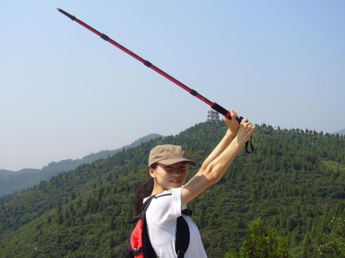 不会拿登山杖