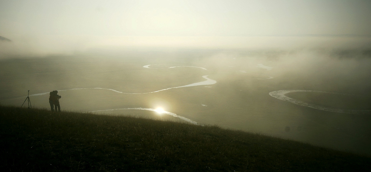 晨雾中的滦河源头。太阳反光点很耀眼。