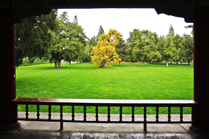 运用廊柱形成天然相框,交代出欣赏景色的角度,彰显出景致更加恬静。