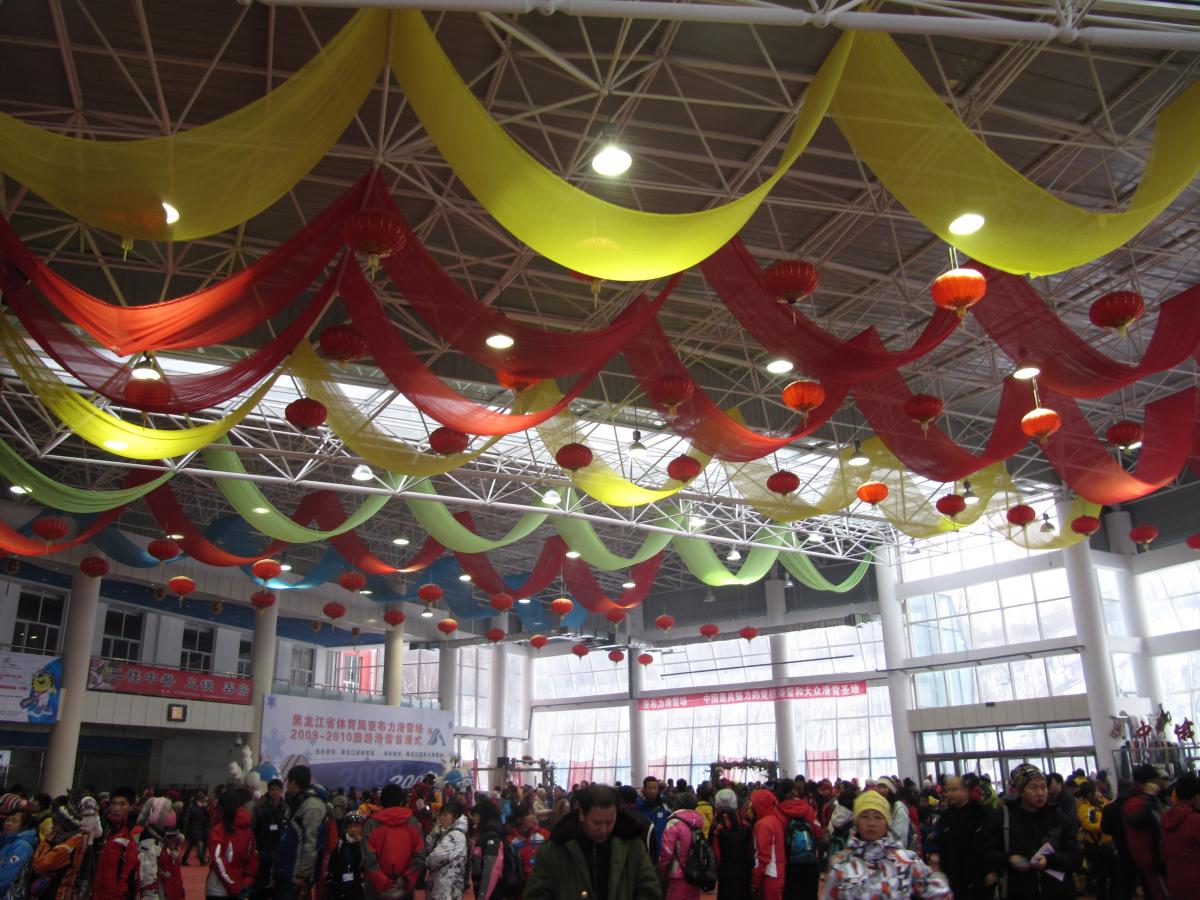 全国最大的雪具大厅——新体委滑雪场雪具大厅。