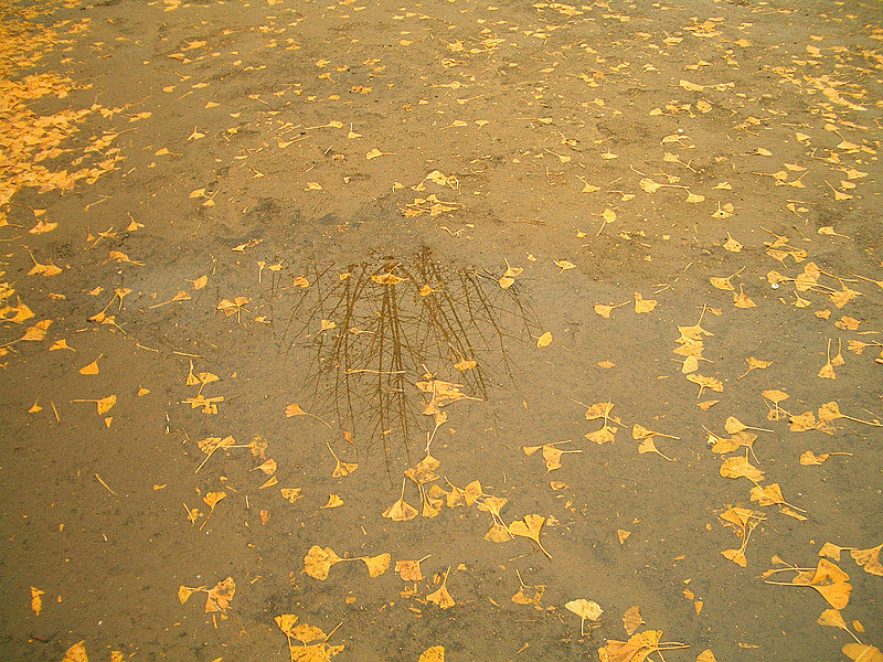 雨后,路面有了积水,那积水中也别有一番风景……