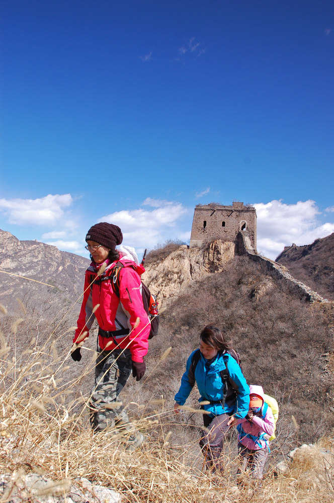 是啊,这张很有层次感,蓝天白云衬托着三位美女,给古老的长城增色不少。。。