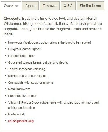 款号:Merrell Wilderness Hiking Boots - Leather (For Men)