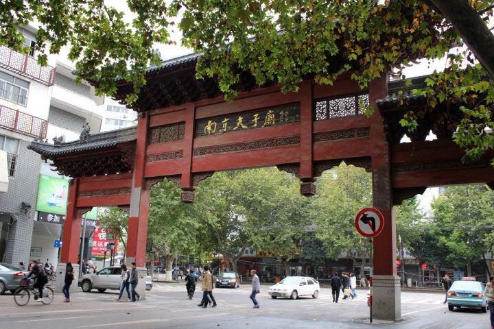 出了青旅走一分钟就到古秦淮街,沿街直走就是夫子庙